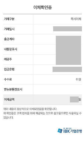 스마트폰 하나만 있으면 아주 손쉽게 기업은행 이체확인증 발급이 가능하니까요.